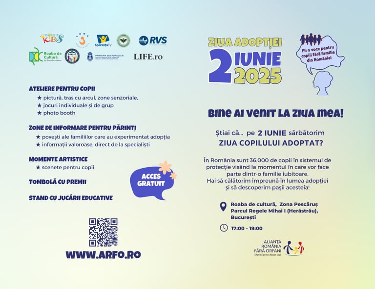 2 Iunie este Ziua Adopției, o ocazie extraordinară de a fi alături de copiii fără familie dar și de familiile adoptive.